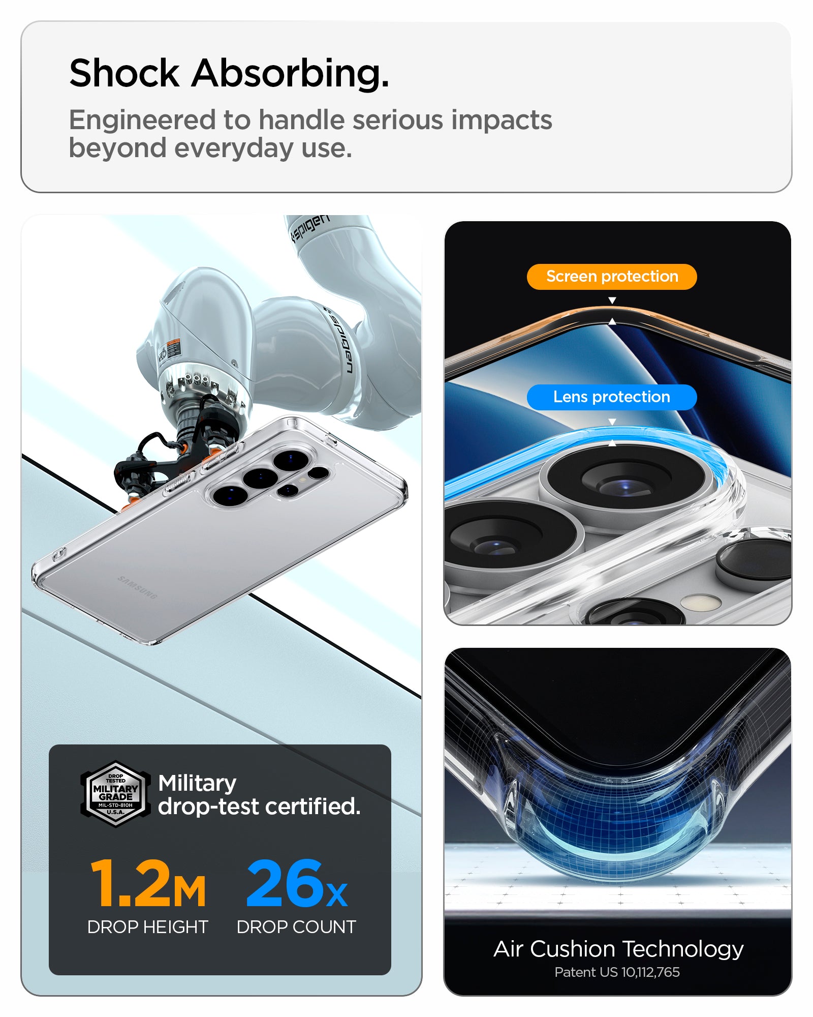 - 💪 تقنية وسادة الهواء® – زوايا معززة لتوزيع الصدمات وزيادة الحماية من السقوط.