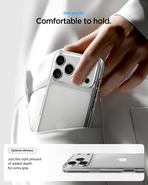 غطاء Spigen Ultra Hybrid لهاتف iPhone 17 Pro Max يجمع بين الشفافية الكاملة والحماية الموثوقة. صُمم ليُبرز المظهر الأصلي لهاتفك، ويستخدم هيكلًا هجينًا متينًا يتكون من حافة TPU وظهر صلب من البولي كربونات ليحمي من الخدوش والسقوط والاستخدام اليومي. حافظ على جهازك نحيفًا وأنيقًا ومحميًا بالكامل مع تصميم Spigen الموثوق.