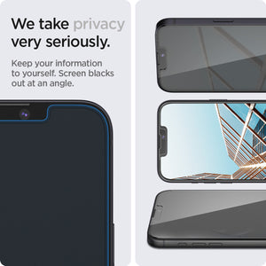 Protect your screen and your privacy with the Spigen GLAS.tR EZ Fit Privacy Screen Protector. Designed for iPhone 17e, iPhone 16e, iPhone 14, iPhone 13, and iPhone 13 Pro, it features a built-in privacy filter that helps keep your personal information visible only to you by blacking out the screen at an angle.