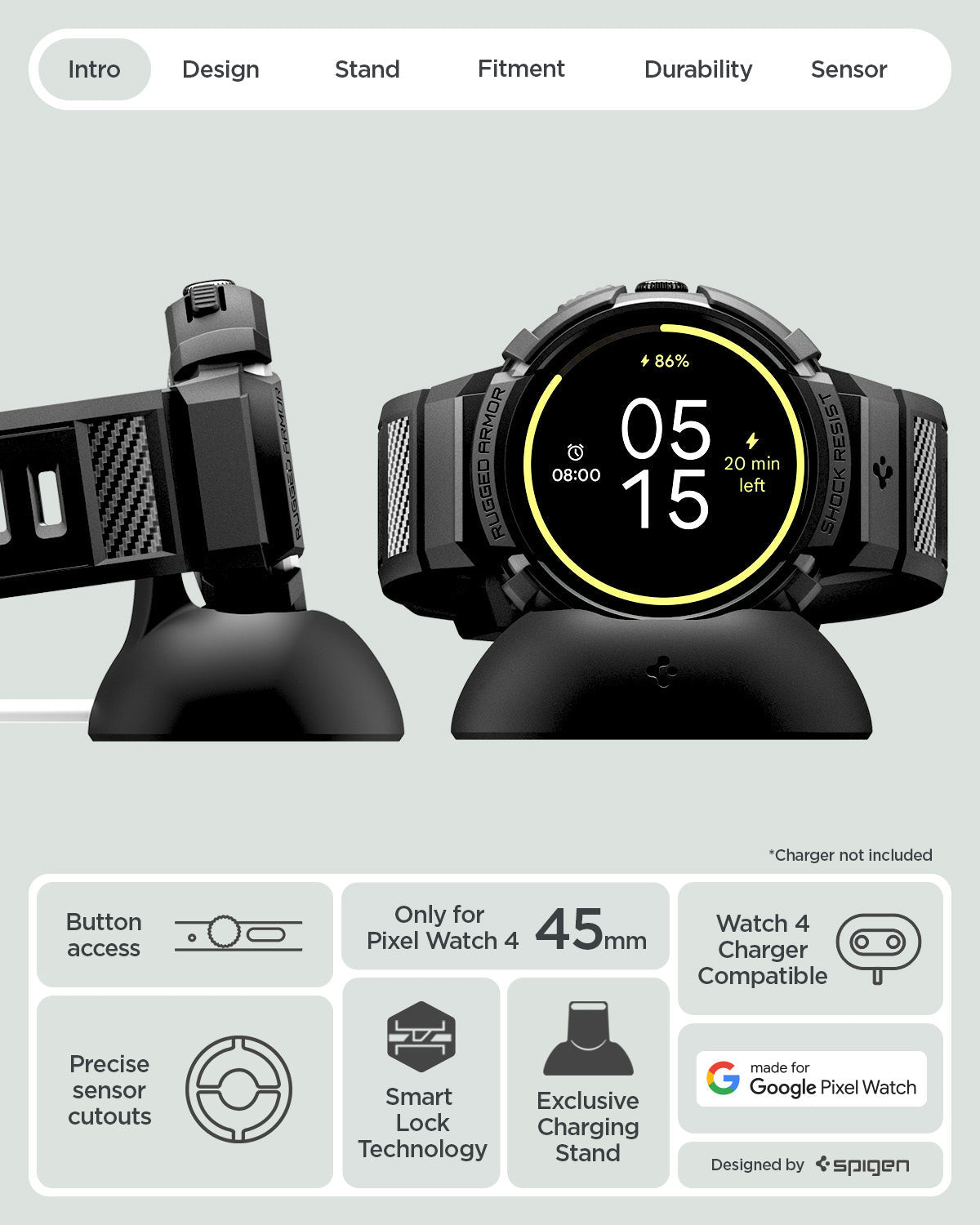 غطاء وحزام وحامل Spigen لساعة Google Pixel Watch 4 (45مم) - Rugged Armor Pro (V2)
